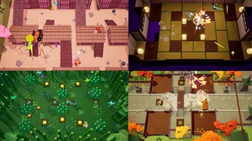 你的对手并不止于其他玩家,游戏中拥有超过15种不同的场景,每个场景都布置了独特的机关和陷阱,冰原雪山、竹山道场、甚至于寿司餐盘都会成为战斗之地。