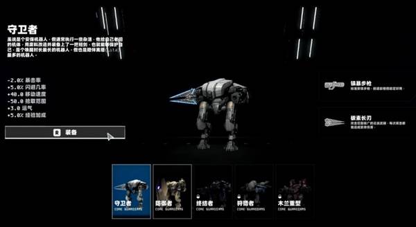 守卫者的特点,是拥有额外增加的5%闪避几率,40%的移动速度,3点的运气以及5%的经验加成。然而,相应要付出的代价,是降低2%的暴击和足足50%的拾取范围。这样的机型在战斗中无疑会更加丝滑,对于玩家的微操技术要求也更高,镇暴步枪和碳素长刀搭配作战,更多的是依靠技巧取胜,捡东西也是相当拼手速。