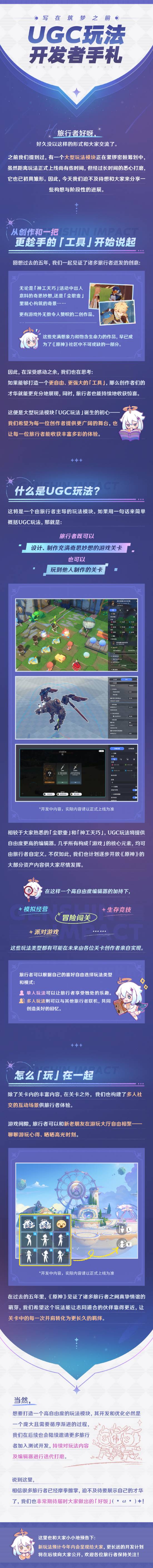 为了协助 UGC 玩法的创作工具(下称“编辑器”)进行调优与打磨,在正式上线时带给玩家更好的使用体验和更多样的趣味性玩法,米哈游官方今日宣布开启《原神》UGC 编辑器创作测试招募。