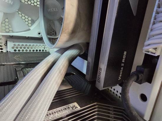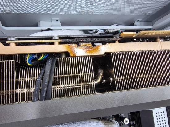 据用户描述,起火点位于显卡PCB靠近主板的位置,火焰持续了大约10秒,“其实烧得还挺不小,连水冷管都被熏黑了。”