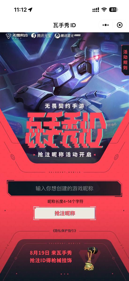 无畏契约手游将于2025年8月19日全平台上线,今日官方抢先注册昵称活动已开启,玩家迅速掀起创意id的抢注热潮。部分寓意独特或极具辨识度的极品,已在电商平台被挂牌标出高价。
