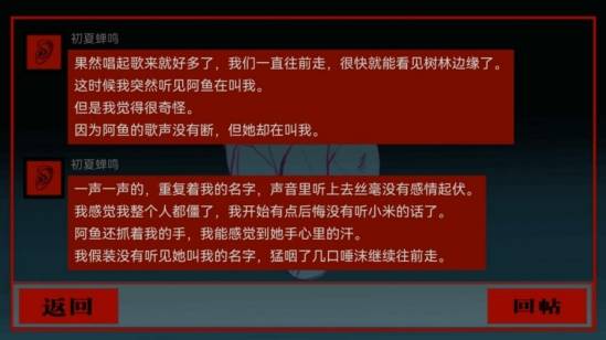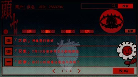 没有花里胡哨的画面,《頭七》的恐怖氛围,主打的是依靠“文字魔力”娓娓道来。玩家在游戏中扮演刚入职西封杂志社的成员,根据主编“癖好”,在“頭七”论坛中搜寻各种民间灵异故事贴之间的关联,并在必要时和同伴实地探索(作死),去解开帖子后隐藏的秘密(惊吓)。