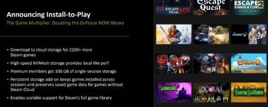 此外,GFN 还有其它诸多升级,其中最大的亮点是“安装即玩”(Install-to-Play)功能的回归。英伟达终于重新允许用户在无需等待英伟达正式筛选的情况下安装游戏,英伟达声称这将使 GeForce Now 的游戏库规模在一夜之间翻倍。