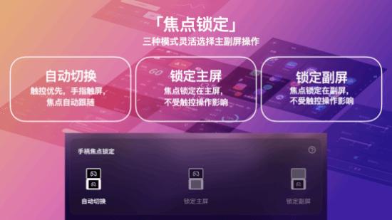Pocket DS 在双屏交互上迎来了重磅升级,全新「焦点锁定」功能让主副屏的操作切换更加灵活与可控。玩家可在“自动切换”、“锁定主屏”与“锁定副屏”三种模式间自由选择:自动模式下,触控优先,手指点击哪块屏幕,焦点便即时跟随;而锁定模式则可确保操作始终集中在指定屏幕,不受触控干扰,让双屏使用在不同场景下都能保持顺畅、高效。无论是专注某一屏的深度操作,还是两屏间的快速交互,焦点锁定都为玩家提供了更高的掌控力。