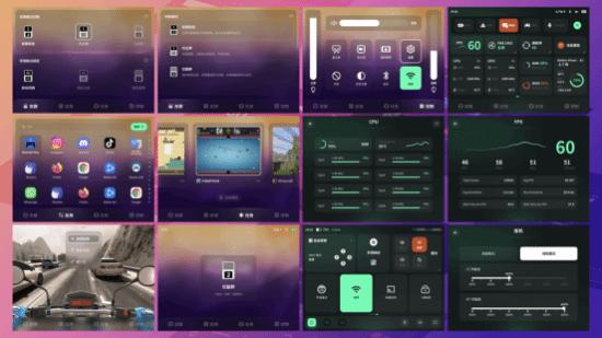 Pocket DS 为副屏打造了专属软件与快捷功能,AYA 快设小窗 DS 版为玩家打造丰富功能体验,在默认主页功能中,主屏为 Launcher,副屏为任务管理器,提供双屏、应用、任务及控制菜单。应用抽屉则带来快速检索、排序和启动应用的功能。启动应用后 Dock 自动隐藏,轻扫呼出,并支持关闭、推送到主屏、最小化等操作。独立多任务功能支持卡片式任务菜单,随时便捷切换。副屏还可实时显示性能参数与状态,涵盖帧率、温度、负载等核心数据。玩家可在副屏直接切换性能模式、调整风扇转速,或深入至 CPU / GPU 主频的精细化调校,还能轻松设置 Wi-Fi 蓝牙等快捷操作。
