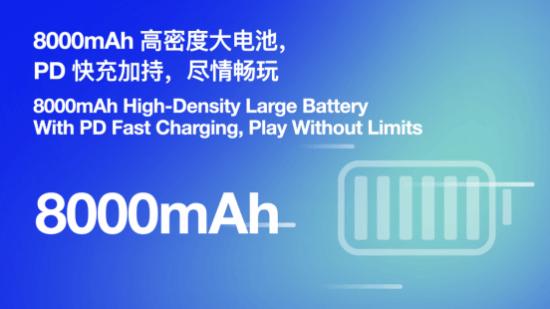 8000mAh 大电池与 PD 快充,畅玩更尽兴