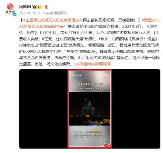 1年来,山西围绕《黑神话:悟空》IP持续推出“跟着悟空游山西”系列玩法,频频吸睛!近日,晋城康养示范区龙马湖畔600架无人机夜空列阵,“黑悟空”震撼出场,舞台高度还原山西28星宿。黑悟空与亢金龙再度重逢,宿命感拉满。山西用现代科技唤醒古建记忆,这不仅是一场视觉盛宴,更是一场文化的焕新。