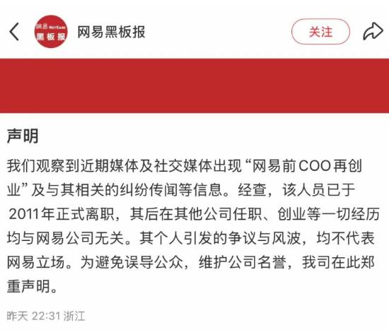 网易昨日发布声明,针对近日“网易前COO再创业”相关消息做出回应,称其个人引发的争议与风波与网易公司无关,不代表网易立场。据了解,近日有网友在社交媒体平台称,网易前COO詹钟晖(叮当)创立的游戏公司广州钛麒存在通过招聘白嫖方案的情况,引发行业关注。