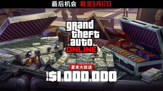 本周是您在夏末GTA游戏币大放送中赚取高达200万GTA游戏币的最后机会。9月17日或之前登录游玩GTA在线模式,即可领取一次性100万GTA游戏币奖励,若您在9月17日或之前注册GTA+,还将额外获得一笔100万GTA游戏币,使奖金翻倍。