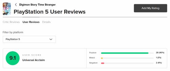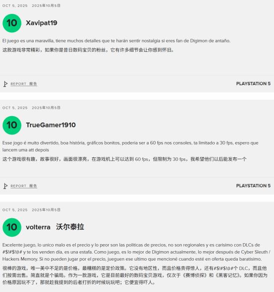 给出好评的玩家们表示,游戏故事情节超棒,对于数码粉来说,这是献给粉丝们最棒的礼物,游戏包含了一切你所期待的玩法。但也有玩家认为“美中不足”的是游戏的定价太贵以及目前游戏限制在30fps,希望后续能推出优化补丁。