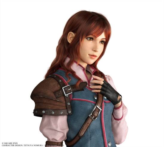 据介绍,在全身CG的表现上,SE对她的服装轮廓进行了细致的调整,同时在脸部的明亮度上也与爱丽丝、蒂法等角色做出了区分。在半身CG中,则表现了她温柔、体贴的一面,希望能让玩家感受到她守护贡加加村民和青年团的氛围。SE的目标是在保留她当年印象的同时,呈现出一些更加成熟的气质。最终来看,这一点已经达成。特别注意的部分是,既要表现出她与扎克斯的羁绊,也要让她本身的存在感鲜明起来。