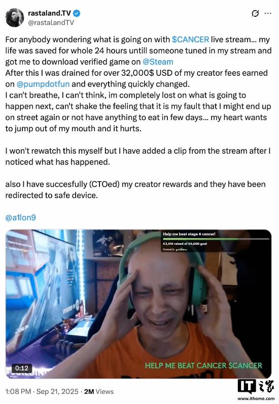 后续,一位患上癌症的拉脱维亚游戏实况主“拉沃”在进行直播时,留言板有人向他推荐了这款《BlockBlasters》游戏,之后黑客便趁虚而入,直接转走了他在Twitch平台上的3.2万美元(IT之家注:现汇率约合22.8万元人民币)创作者激励金。