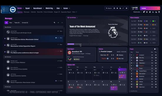 《FM26》将引入全新用户界面,对传统的侧边栏显示方式进行大幅改进,以更直观简洁的界面令足球经理体验焕然一新。通过画面上方的导航栏可以轻松打开各种功能,从招募球员到制定战术、再到比赛开始前的最终确认,一切必要操作都触手可及。