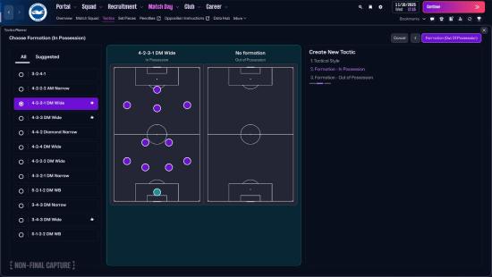 《FM26》将为战术系统带来显著进化。新系统下可为进攻状态与防守状态分别设置阵型,进一步细化球员场上位置与战术角色的管理。球员角色将根据战局变化而改变,同时将新增全新球员职位及经过重新设计的球员职位。