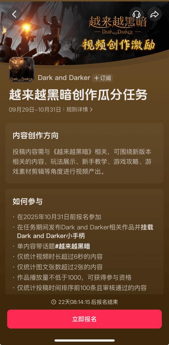 目前,游戏已实现全面的中文本地化支持,开发团队也以“越来越黑暗官方”账号正式入驻B站,与广大中文玩家建立更直接的交流。值得关注的是,在本赛季更新中,游戏同步上线了与抖音合作的视频任务激励计划,鼓励玩家通过短视频形式分享精彩游戏时刻,进一步丰富互动体验。开发团队强调,未来将持续推进内容更新与体验优化,致力于以充满创造力与灵魂的游戏设计,以及始终尊重每一位玩家的态度,赢得大家的认可,为所有玩家创造持久的游戏乐趣。