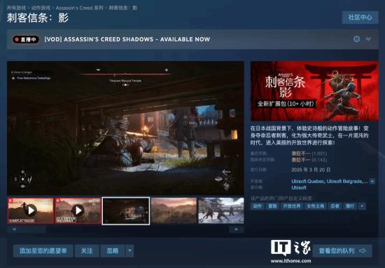 回顾《刺客信条:影》,本作是《刺客信条》系列的第14部主线作品。游戏中玩家将扮演伊贺女刺客“藤林奈绪江”或侍从“弥助”,经历一段扑朔迷离的古日本剧情。目前在Steam国区上售价348元起,好评率77%“多半好评”,简体中文评测69%“褒贬不一”。
