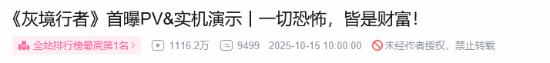 10月15日,腾讯公布了旗下全新PvEvP猎杀夺宝FPS新作《灰境行者》的首个宣传PV。截至发稿,该视频播放量已经突破千万。
