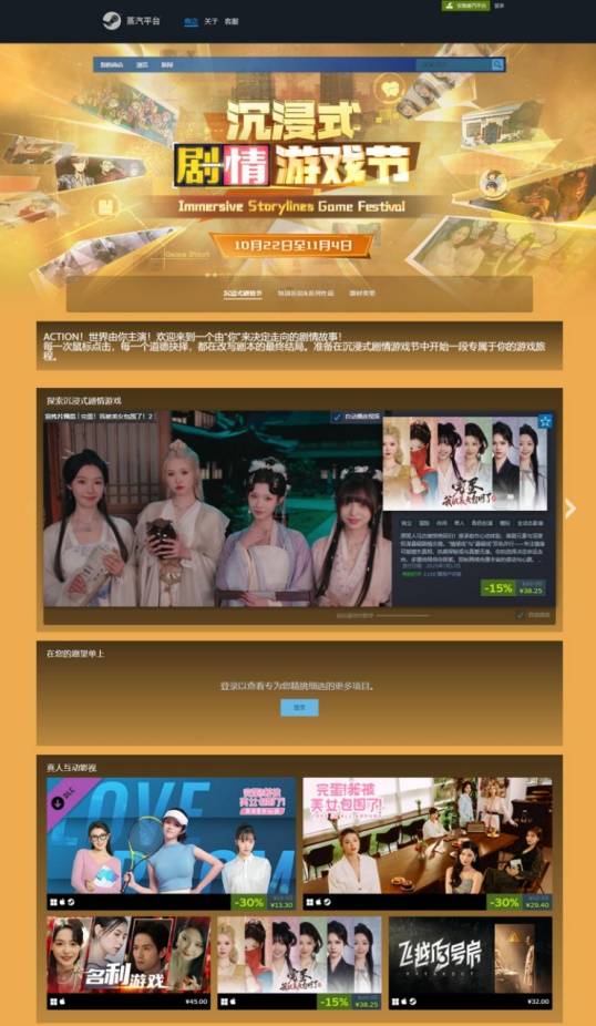 蒸汽平台倾力打造的《沉浸式剧情游戏节》已于今日(10月22日)正式开启。活动集中展出了近年来广受好评的互动影游与视觉小说佳作,涵盖恋爱、科幻、喜剧、悬疑、推理、历史等多种题材,旨在适配不同玩家日益多元化的叙事游戏体验需求。