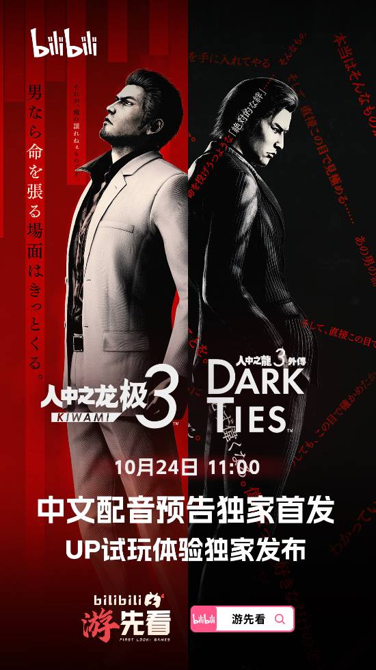 《人中之龙极3》&《人中之龙3 外传Dark Ties》中配预告独家首发→10月24日 11:00