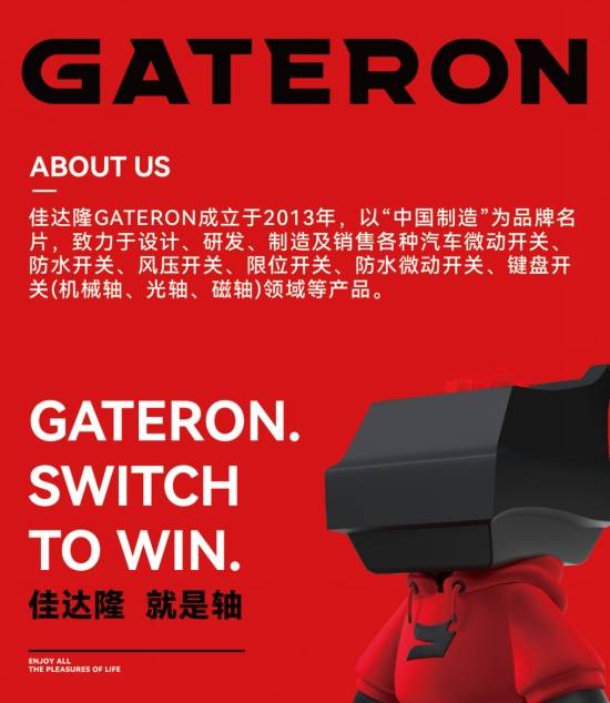 佳达隆,全球知名键轴厂商之一,始终致力于为开关应用提供顶尖解决方案,并以创新技术驱动电竞生态发展。本次展会将亮相除轴体之外与多方品牌联合打造的生态新力作,展现全新未来。