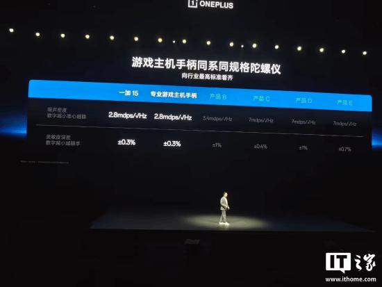 IT之家 10 月 27 日消息,在今晚的一加 15|Ace 6 新品发布会上,一加中国区总裁李杰指出了市面上手机陀螺仪的问题:抖、飘、慢。他表示,手机陀螺仪是 FPS 游戏中的「第三只手」,其两大关键指标是噪声密度和灵敏度误差。