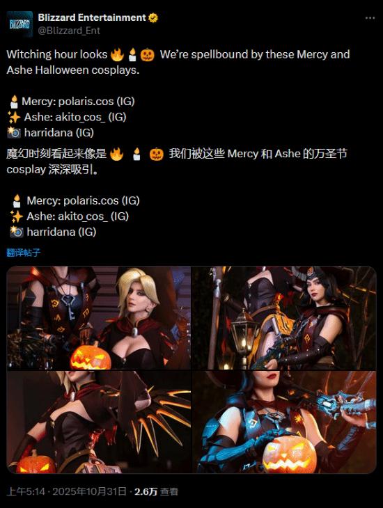 暴雪官方今日在社交媒体上分享了一组万圣节主题的《守望先锋》Cos美图。