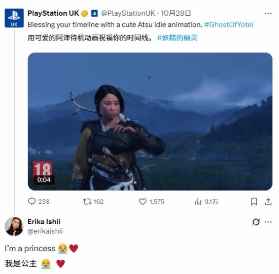 饰演“笃”的演员Erika Ishii在评论区回复自己是“公主”,引发玩家热议。