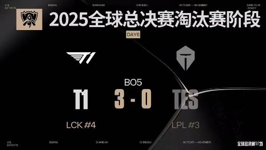 在昨晚的《英雄联盟》2025全球总决赛当中,LCK战队T1以3:0的成绩战胜了LPL战队TES。