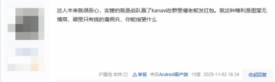 有吧友认为Kanavi是一个“唯利是图的雇佣兵”。