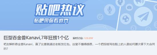 赛后,有玩家把矛头直指TES的打野选手Kanavi,批评其“划水不出力”。相关内容在贴吧也引起了热烈讨论,截至发稿,话题“巨型吞金兽Kanavi,7年狂捞1个亿”的实时讨论已有126.8W,贴吧热搜第3。