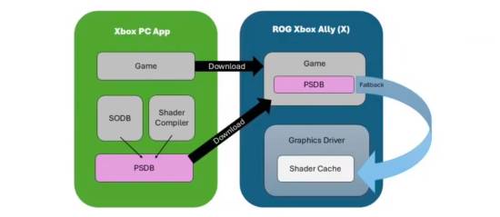 当玩家通过掌机内置的Xbox PC App下载游戏时,系统会自动交付相应的PSDB数据,使游戏在首次启动时即可直接命中缓存,无需在本地重新编译。若检测到驱动更新,缓存也会随之更新,从而避免再次延迟。