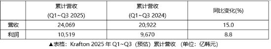 KRAFTON公司今日(11月4日))在投资者关系简报会上公布了2025年第三季度财报。