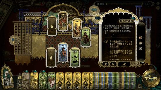 游戏场景横跨市井巷陌、风月场所、宫殿与圣域,每个场景都拥有丰富人物与事件,等待探索与互动。你需要分配角色、资源完成事件,并在过程中积累资源,拉拢盟友,建立起来足以与苏丹抗衡的势力。