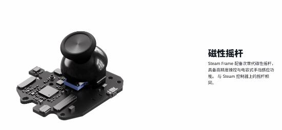 Steam Frame配备次世代磁性摇杆,具备高精度操控与电容式手指感应功能。与Steam控制器上的摇杆相同。Steam Frame Controller同样配备游玩非VR游戏所需的全部常见输入:十字键、ABXY键、摇杆、扳机键与缓冲键。