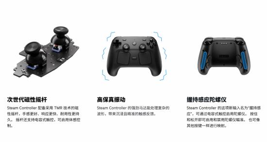 Valve表示,手柄配备支持TMR技术的次世代磁性摇杆,旨在提升手感、响应速度和长期可靠性,并支持电容触控,用于运动控制。