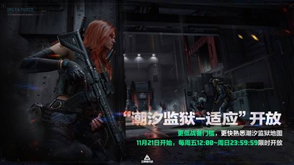 烽火地带「潮汐监狱-适应」限时开放,从11月21日开始,每周五中午12:00-周日晚上23:59:59限时开放,战备门槛大幅降低,帮助各位干员更快速熟悉潮汐监狱地图。