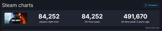 根据SteamDB的数据,《黑色行动7》的发售使得《使命召唤》系列游戏的同时在线玩家峰值约为8.4万人。作为对比,在2024年10月《黑色行动6》发售时,这一数字曾达到30.6万人。