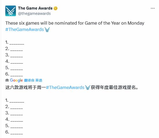 今日,TGA官方发文,称将有六款游戏获得年度最佳游戏提名,你希望是哪六款?