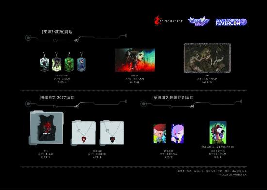 此次限定场贩共有《巫师3:狂猎》10周年周边,与《赛博朋克 2077》、《赛博朋克 边缘行者》周边,所有周边均为活动限定。其中《赛博朋克 边缘行者》的流沙亚克力砖在现场仅提供展示,将通过线上进行贩售。欢迎关注FEVERCON官方账号获取线上贩售内容最新情报!