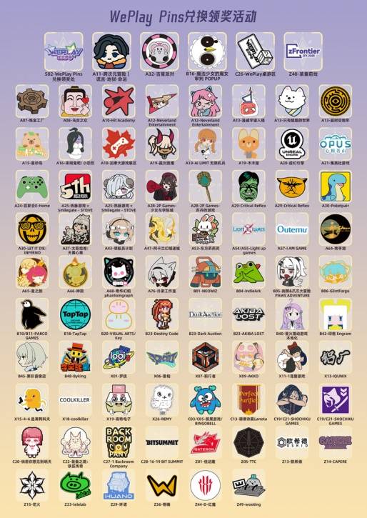 WePlay & ZFX 2025 Pins造型大公开!今年共有84款Pins等待玩家的收藏!WePlay Pins丰富的造型与精美的设计已经成为每一年来到现场玩家珍贵的收藏品!通过收藏的Pins不仅能勾起在WePlay现场的快乐回忆,还可以抽奖兑换奖品!