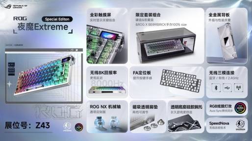 全新ROG 夜魔 98 HE、ROG 夜魔 Extreme Special Editon、ROG 龙鳞 2 ACE、ROG 破风、ROG 棱镜 2即将亮相展会,更有ROG全家桶等你来玩