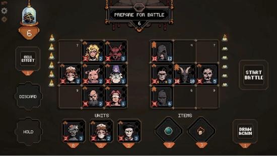 一款黑暗风格的类Rogue自走棋游戏,在3×3的棋盘上展开战斗。部署你的兵种,驾驭禁忌的遗留物,并在最后一支蜡烛燃尽之前完成仪式。