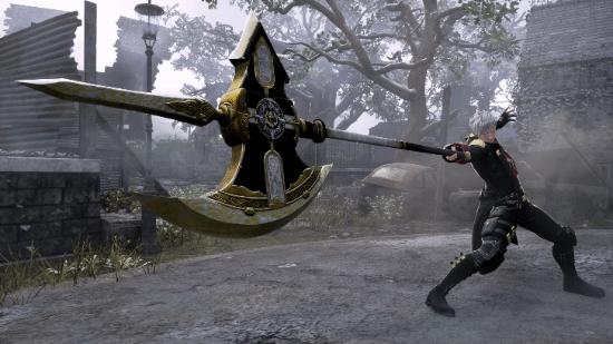 以长柄前端的刀刃进行攻击的巨大武器。适合需要活用长远攻击范围的中距离战斗,也可以利用大范围斩击一次攻击多个目标,或突刺进行个别攻击等方式灵活战斗。可以利用在头上旋转武器的大回旋或高速突进突刺等活用攻击距离的专用术式打倒敌人。