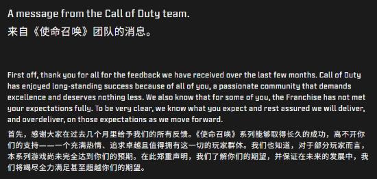 除开这些,使命召唤官方也承诺了另外一条消息: