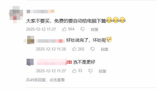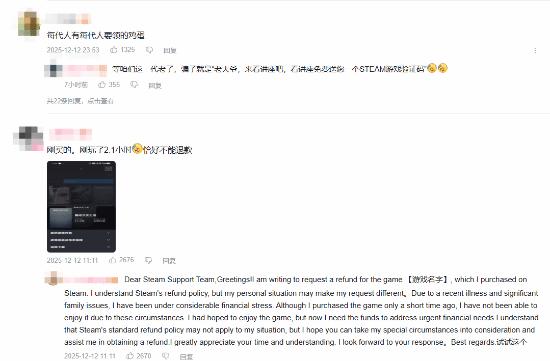 有玩家表示 :每代人有每代人的鸡蛋;也玩家晒出 “刚玩 2.1 小时恰好不能退款” 的游戏时长,自嘲刚趁打折购买的 “冤种经历”;大量网友还表示, 免费的有病毒、会自动给电脑下病毒,千万别领啊!