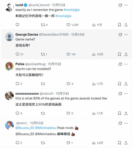 近日,有玩家分享《上古卷轴 5:天际》模组实机画面,在X平台引发热议,相关内容获得541.3万次查看,玩家纷纷感慨其画风 “突破认知”。