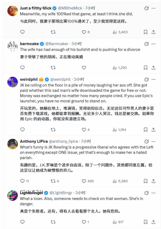我气炸了 —— 这根本不是免费的,Epic 还是得给那个‘TERF 碧池’付版权费。而且这相当于给那些偏执者传递信号:不管她做什么,大家还是会买她的 IP。