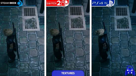 ElAnalistaDeBits发布《最终幻想 7:重制版》Switch 2 - PS4 - Steam Deck三平台画面对比视频,他表示:Switch 2 版《最终幻想 7:重制版》(1080p 分辨率)的运行分辨率虽低于 PS4 Pro 版(1620p),但该版本却搭载了此前 PS5 版的全部视觉增强效果,甚至在多个画面表现维度上实现了对 PS5 版的超越。