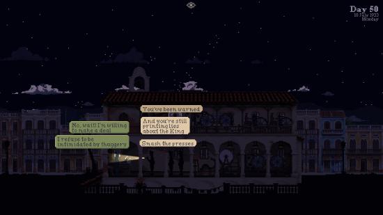 你可以利用耸动标题吸引眼球,也可以通过不断强化某些议题影响局势,甚至编造惊人谎言以操纵读者。每一条你印刷的新闻都会像石子砸入湖面,引起真实可见的连锁反应。从报纸销量、阵营态势,到街头风向,都会不同程度受到你选择的影响。