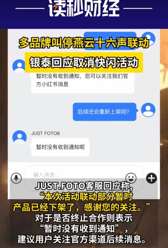 12月30日,@读秒财经 分别询问了两家合作方的客服。JUST.FOTO客服回应称,“本次活动联动部分暂时产品已经下架了,感谢您的关注。”对于是否终止合作则表示“暂时没有收到通知”,建议用户关注官方渠道后续消息。